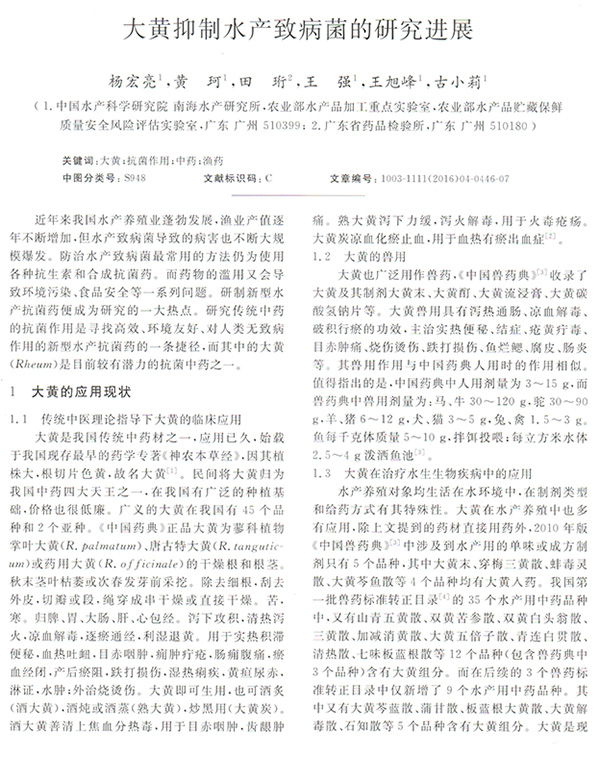 大黃抑制水產(chǎn)致病菌的研究進展