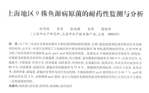 上海地區(qū)9株魚源病原菌的耐藥性監(jiān)測與分析