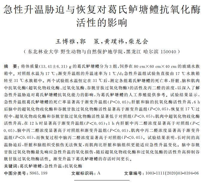 急性升溫脅迫與恢復(fù)對葛氏鱸塘鱧抗氧化酶活性的影響