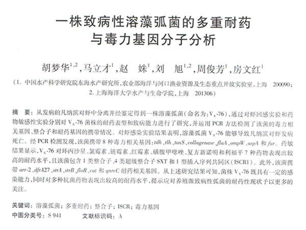 一株致病性溶藻弧菌的多重耐藥與毒力基因分子分析