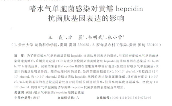 嗜水氣單胞菌感染對黃鱔 hepcidin 抗菌肽基因表達的影響