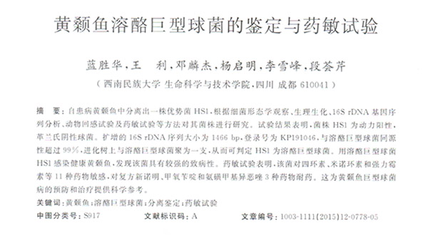 黃顙魚溶酪巨型球菌的鑒定與藥敏試驗(yàn)