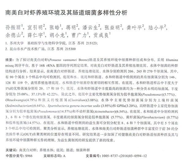 南美白對蝦養(yǎng)殖環(huán)境及其腸道細(xì)菌多樣性分析
