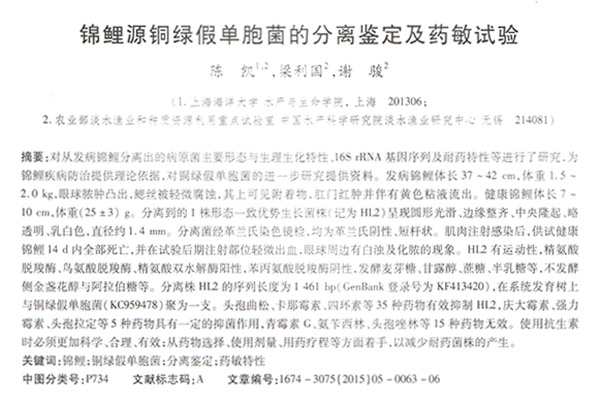 錦鯉源銅綠假單胞菌的分離鑒定及藥敏試驗(yàn)
