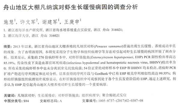 舟山地區(qū)大棚凡納濱對(duì)蝦生長(zhǎng)緩慢病因的調(diào)查分析