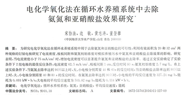 電化學(xué)氧化法在循環(huán)水養(yǎng)殖系統(tǒng)中去除氨氮和亞硝酸鹽效果研究