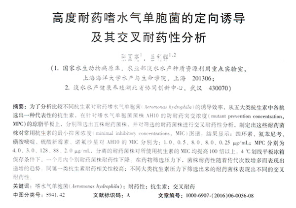 高度耐藥嗜水氣單胞菌的定向誘導(dǎo)及其交叉耐藥性分析