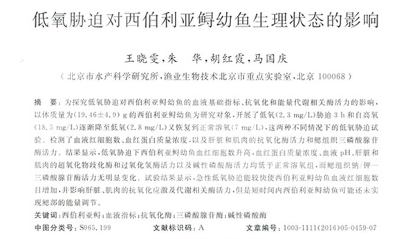 低氧脅迫對西伯利亞鱘幼魚生理狀態(tài)的影響