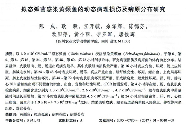 擬態(tài)弧菌感染黃顙魚的動(dòng)態(tài)病理?yè)p傷及病原分布研究
