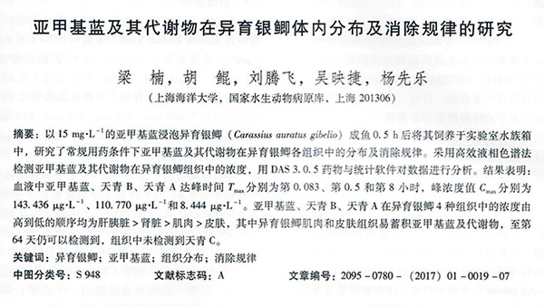 亞甲基藍及其代謝物在異育銀鯽體內(nèi)分布及消除規(guī)律的研究