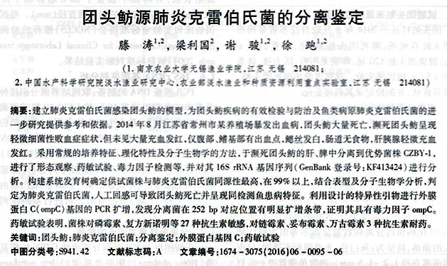 團頭魴源肺炎克雷伯氏菌的分離鑒定