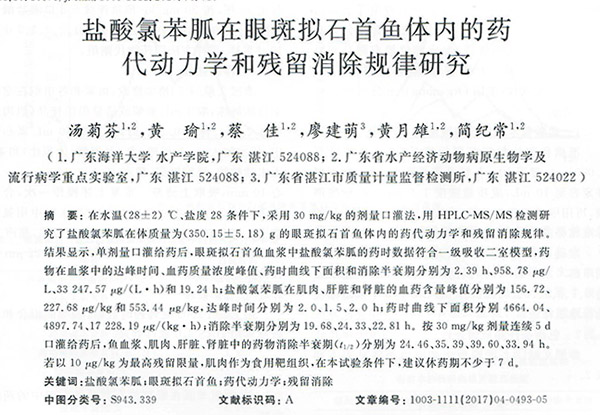 鹽酸氯苯胍在眼斑擬石首魚體內的藥代動力學和殘留消除規(guī)律研究