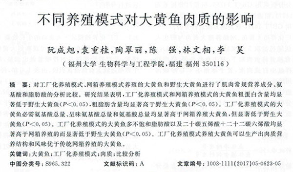 不同養(yǎng)殖模式對大黃魚肉質的影響
