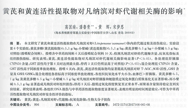 黃芪和黃連活性提取物對(duì)凡納濱對(duì)蝦代謝相關(guān)酶的影響