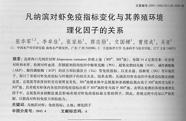 凡納濱對蝦免疫指標變化與其養(yǎng)殖環(huán)境理化因子的關(guān)系