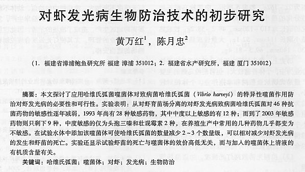 對(duì)蝦發(fā)光病生物防治技術(shù)的初步研究