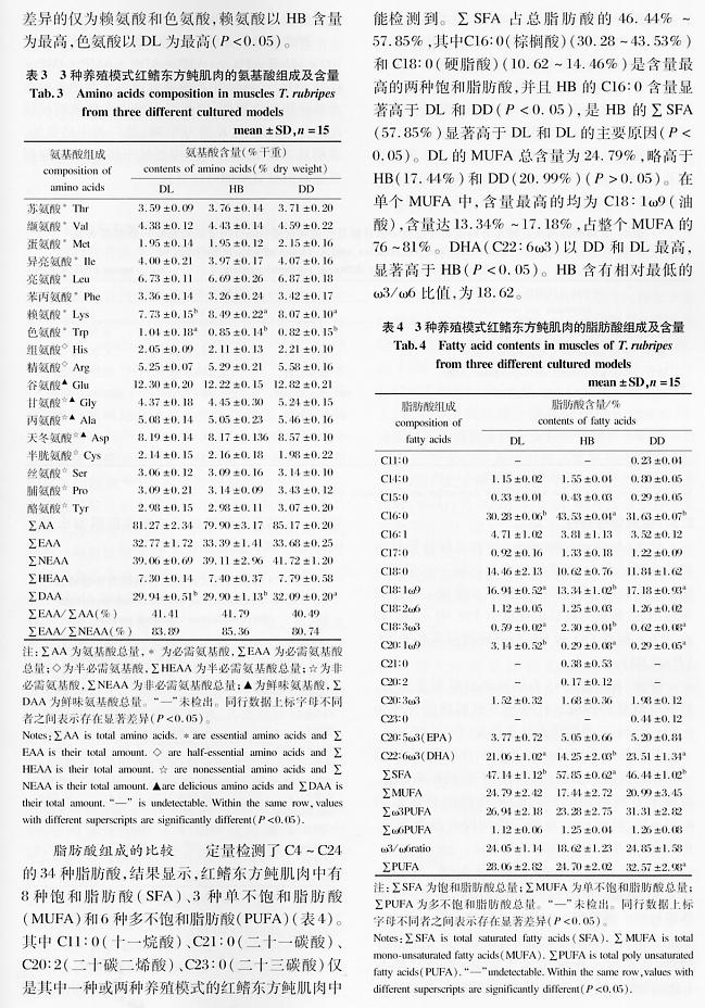 不同養(yǎng)殖模式下紅鰭東方鲀的品質比較4
