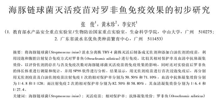 海豚鏈球菌滅活疫苗對(duì)羅非魚免疫效果的初步研究