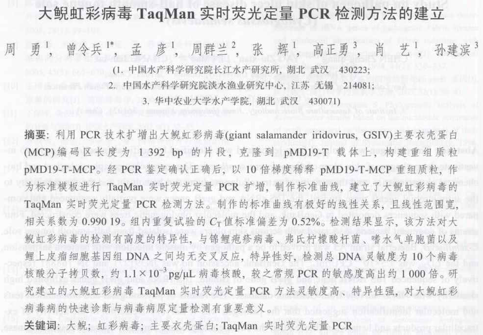 大鯢虹彩病毒TaqMan實(shí)時(shí)熒光定量PCR檢測(cè)方法的建立