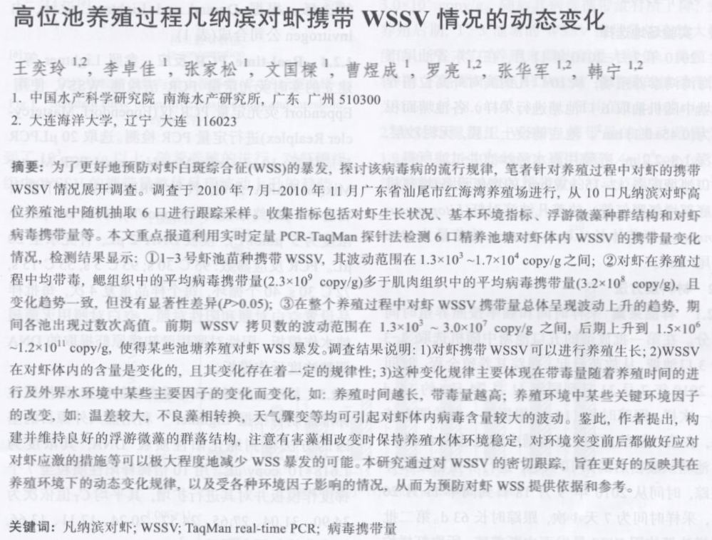 高位池養(yǎng)殖過(guò)程凡納濱對(duì)蝦攜帶WSSV情況的動(dòng)態(tài)變化