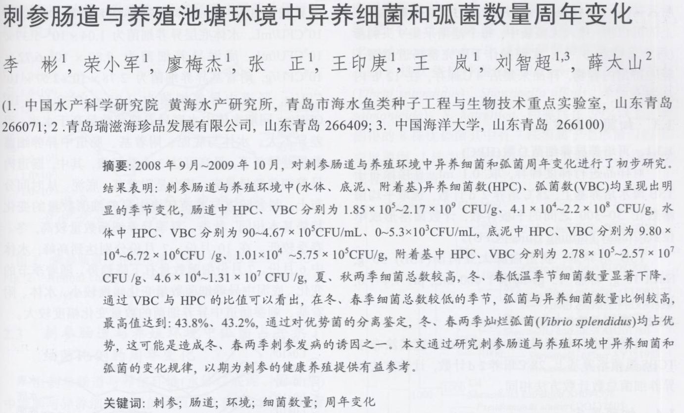 刺參腸道與養(yǎng)殖池塘環(huán)境中異養(yǎng)細(xì)菌和弧菌數(shù)量周年變化