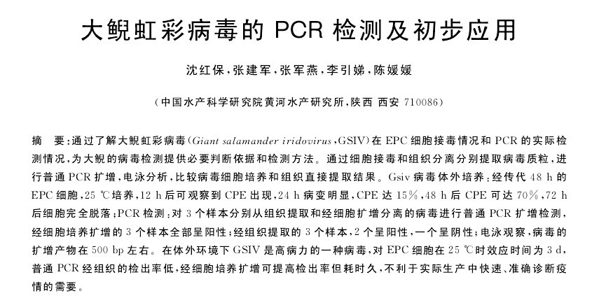 大鯢虹彩病毒的PCR檢測及初步應(yīng)用