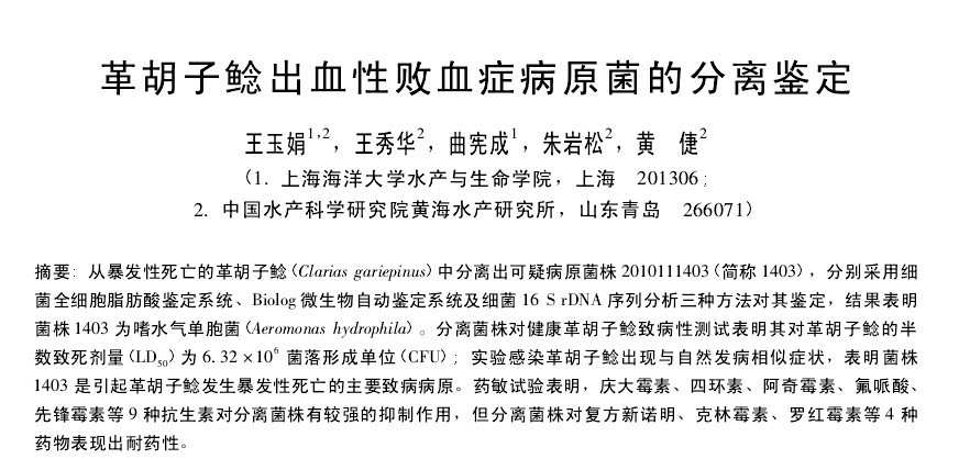革胡子鯰出血性敗血癥病原菌的分離鑒定