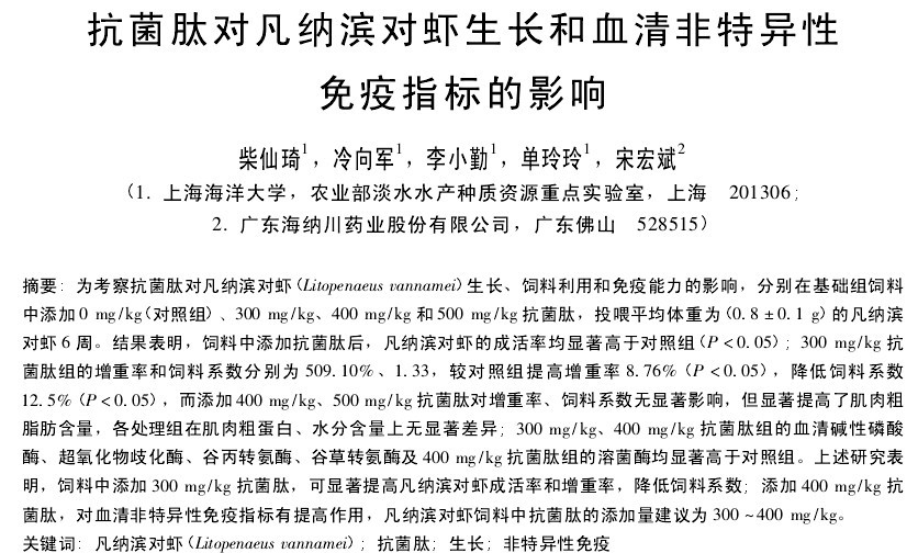 抗菌肽對凡納濱對蝦生長和血清非特異性免疫指標(biāo)的影響