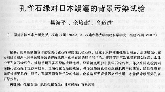 孔雀石綠對(duì)日本鰻鱺的背景污染試驗(yàn)