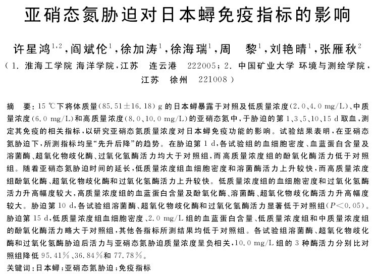 亞硝態(tài)氮脅迫對(duì)日本蟳免疫指標(biāo)的影響