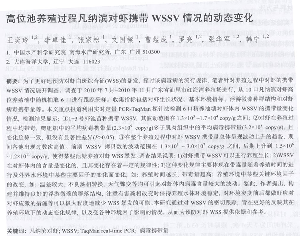 高位池養(yǎng)殖過程凡納濱對(duì)蝦攜帶WSSV情況的動(dòng)態(tài)變化
