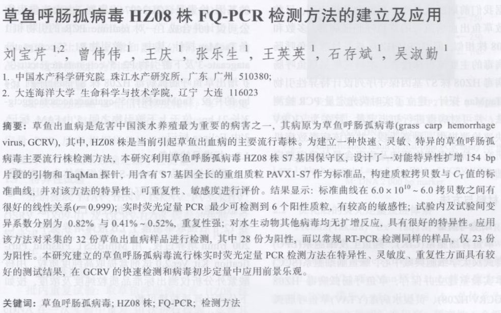 草魚呼腸孤病毒HZ08株FQ-PCR檢測方法的建立及應(yīng)用