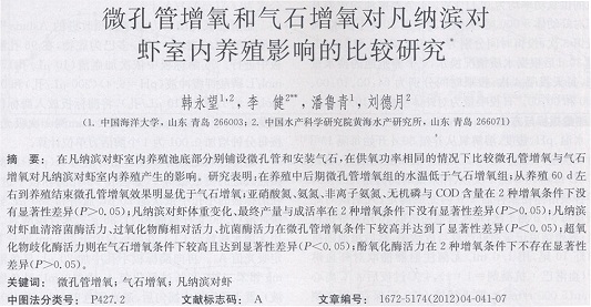 微孔管增氧和氣石增氧對(duì)凡納濱對(duì)蝦室內(nèi)養(yǎng)殖影響的比較研究
