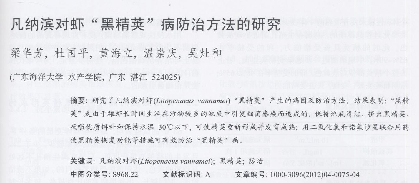 凡納濱對蝦黑精莢病防治方法的研究