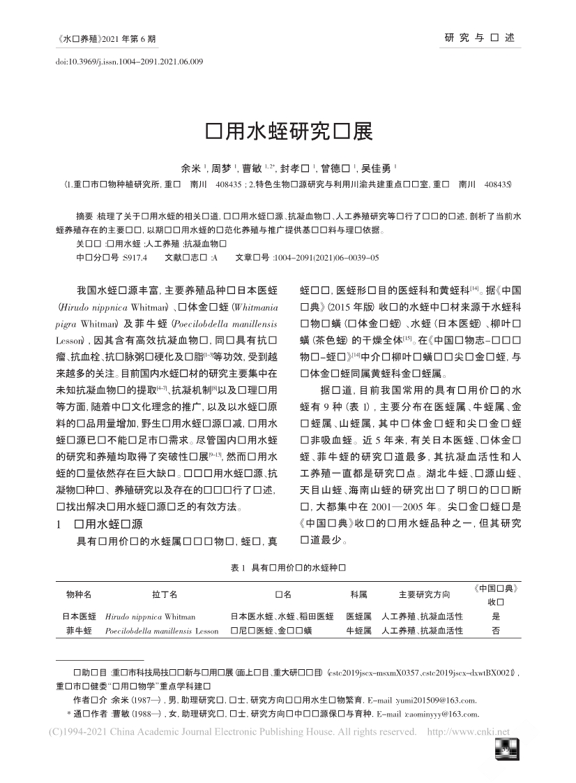 藥用水蛭研究進(jìn)展