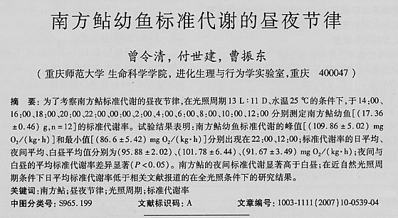 南方鲇幼魚標(biāo)準(zhǔn)代謝的晝夜節(jié)律