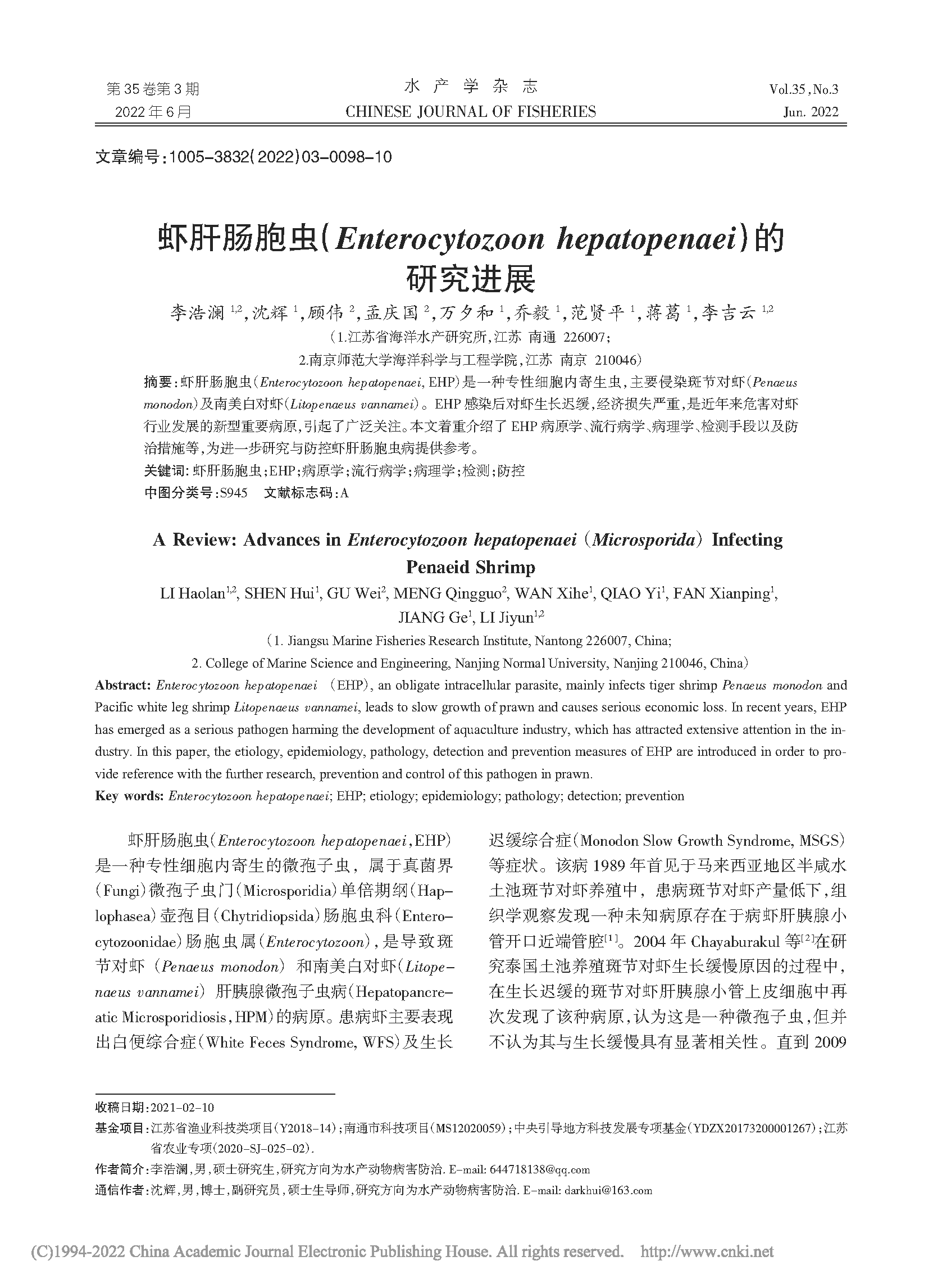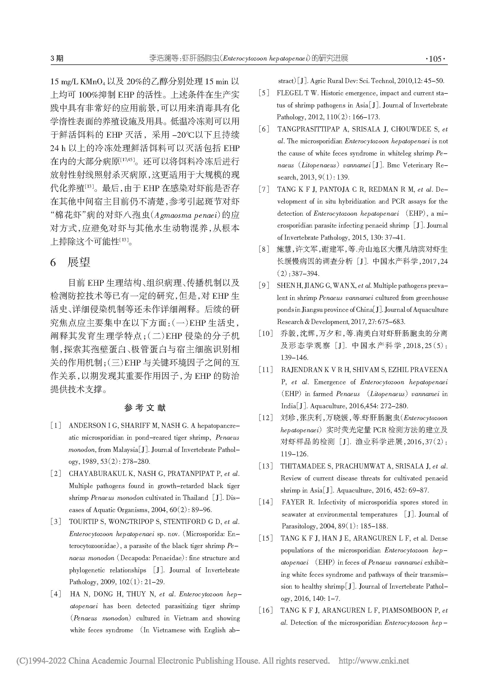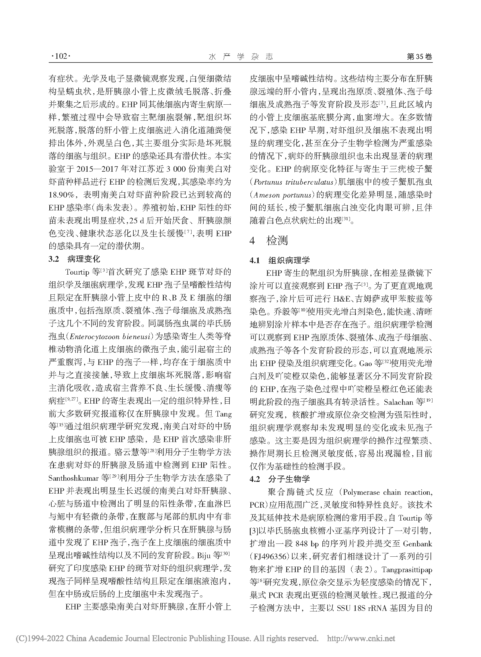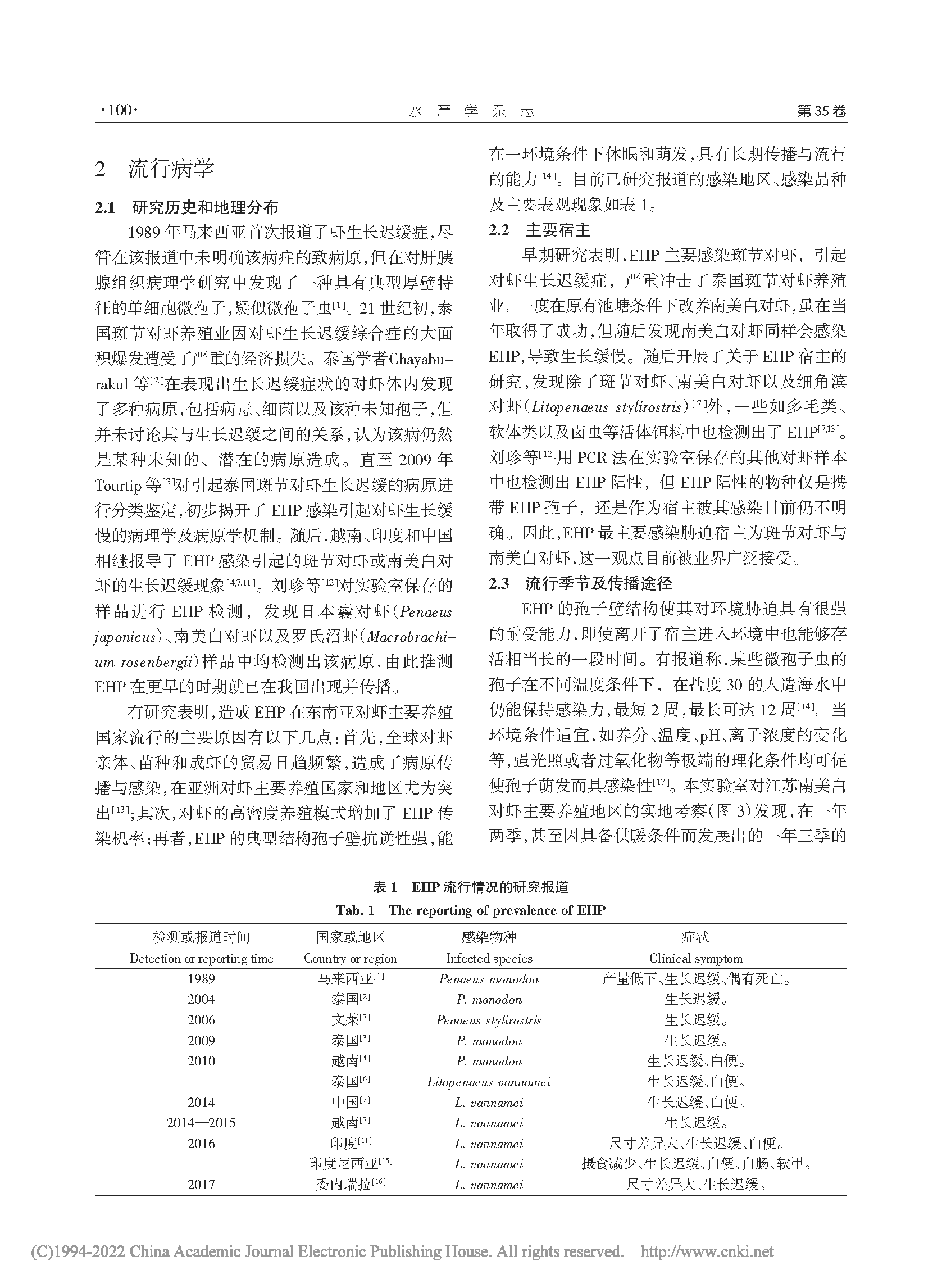 蝦肝腸胞蟲(chóng)(Enterocytozoon hepatopenaei)的研究進(jìn)展