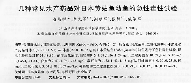 幾種常見水產藥品對日本黃姑魚幼魚的急性毒性試驗