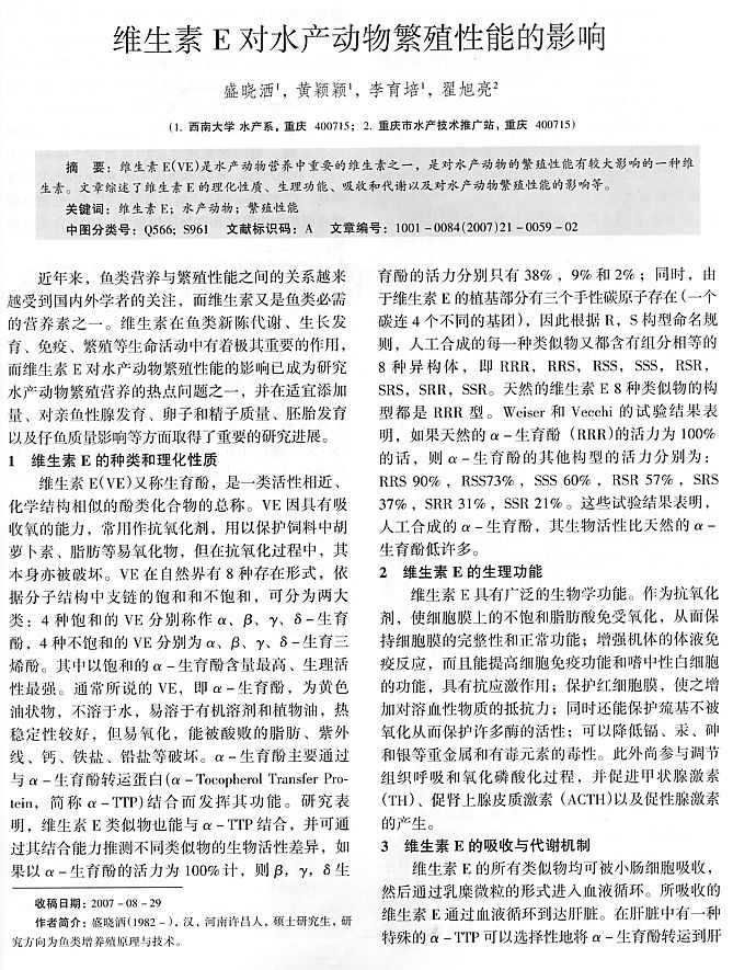維生素E對水產(chǎn)動(dòng)物繁殖性能的影響1