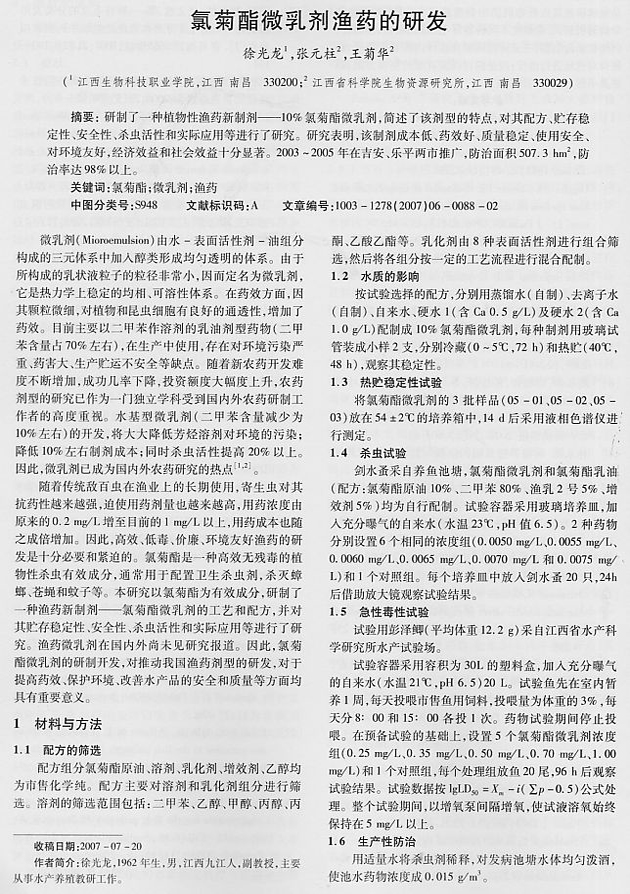 氯菊酯微乳劑漁藥的研發(fā)1