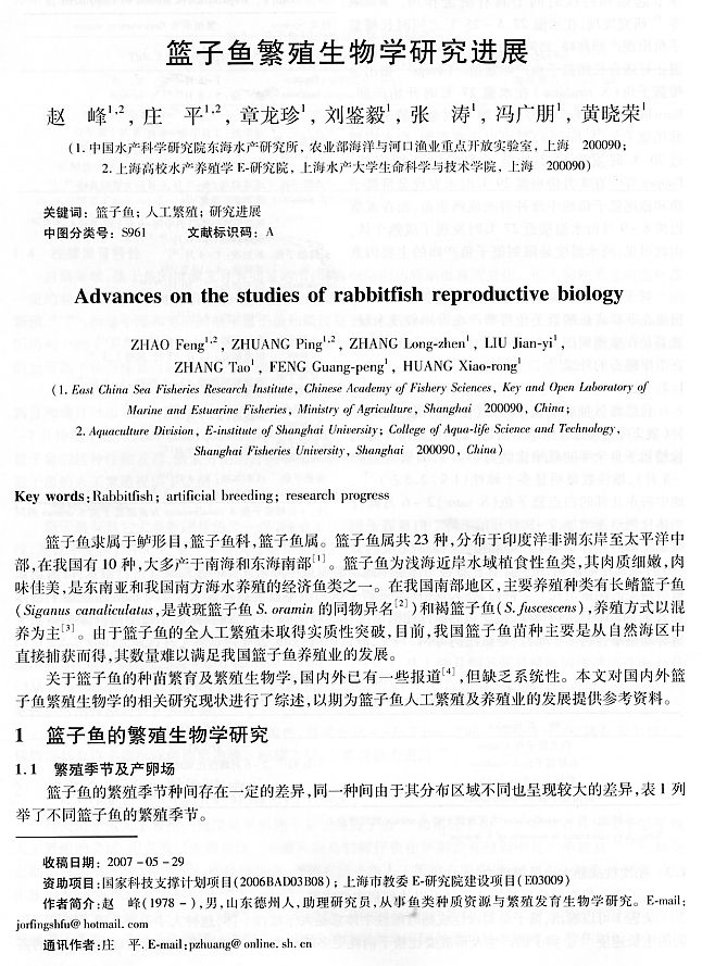 籃子魚繁殖生物學(xué)研究進(jìn)展1