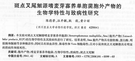 斑點叉尾鮰源嗜麥芽寡養(yǎng)單胞菌胞外產(chǎn)物的生物學(xué)特征與致病性研究