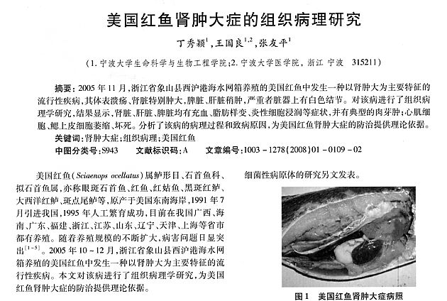 美國紅魚腎腫大癥的組織病理研究