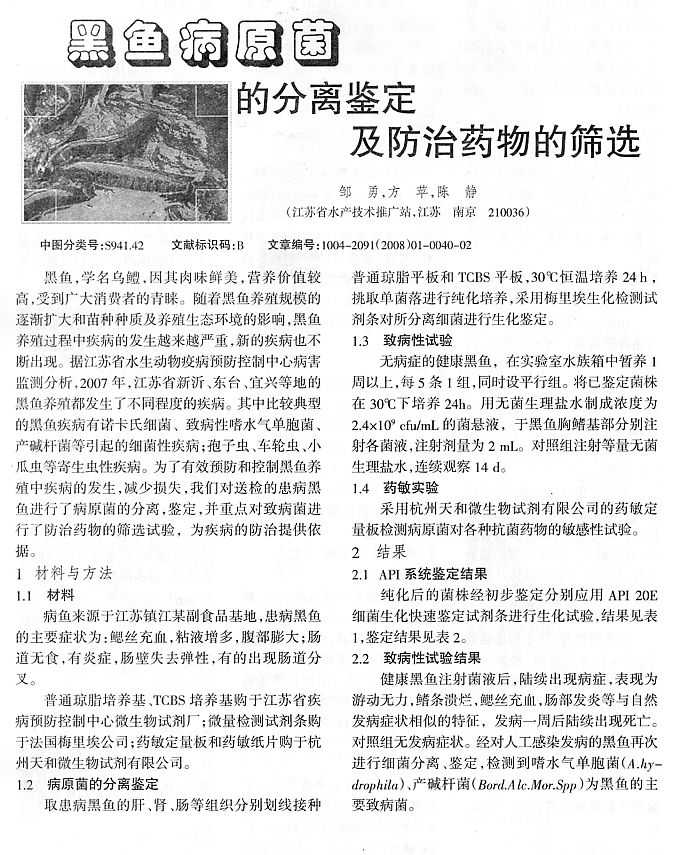 黑魚病原菌的分離鑒定及防治藥物的篩選1