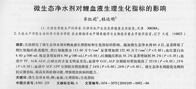 微生態(tài)凈水劑對鯉血液生理生化指標的影響