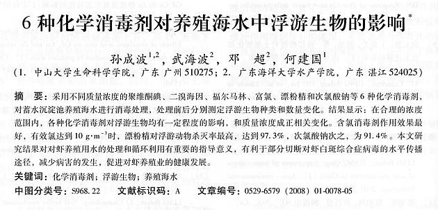 6種化學(xué)消毒劑對養(yǎng)殖海水中浮游生物的影響