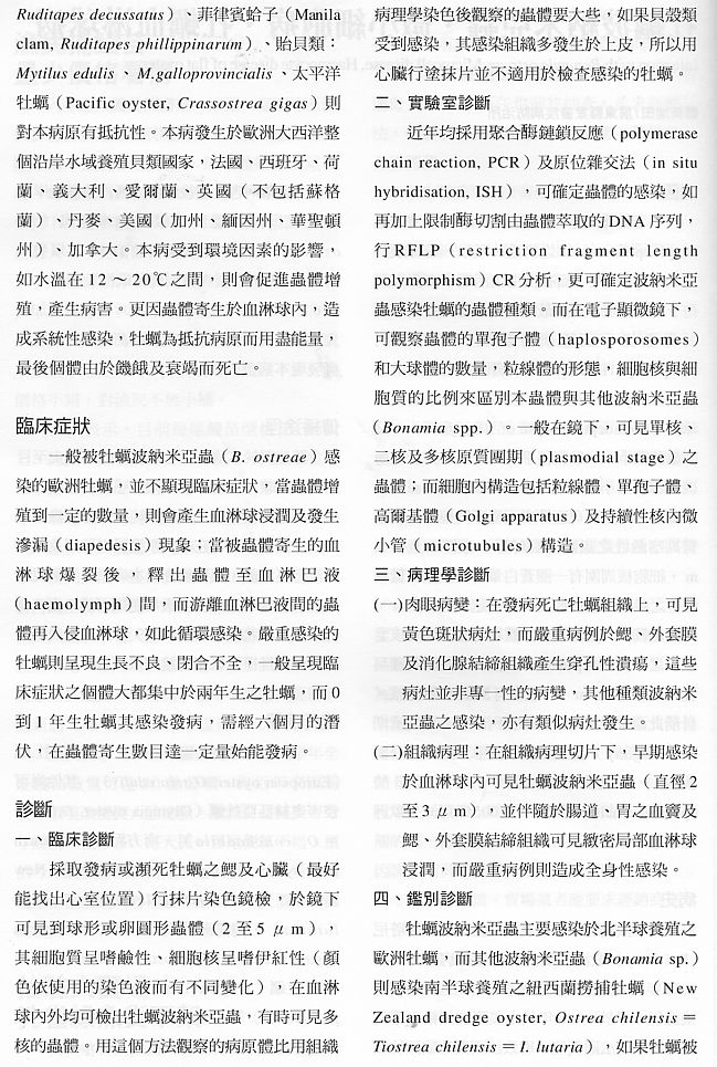 牡蠣波納米亞蟲、微小細胞病、牡蠣血淋球病2
