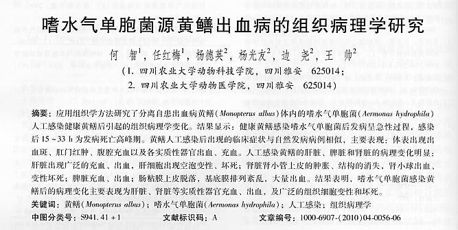 嗜水氣單胞菌源黃鱔出血病的組織病理學(xué)研究
