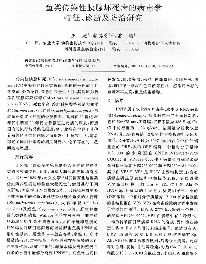 魚類傳染性胰腺壞死病的病毒學(xué)特征、診斷及防治研究1