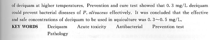 癸甲溴銨對(duì)褐牙鲆的急性毒性及抑菌試驗(yàn)2